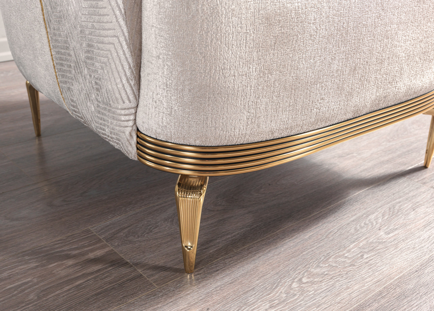 •Curved Elegance: Rounded armrests and detailed stitching enhance its refined silhouette.